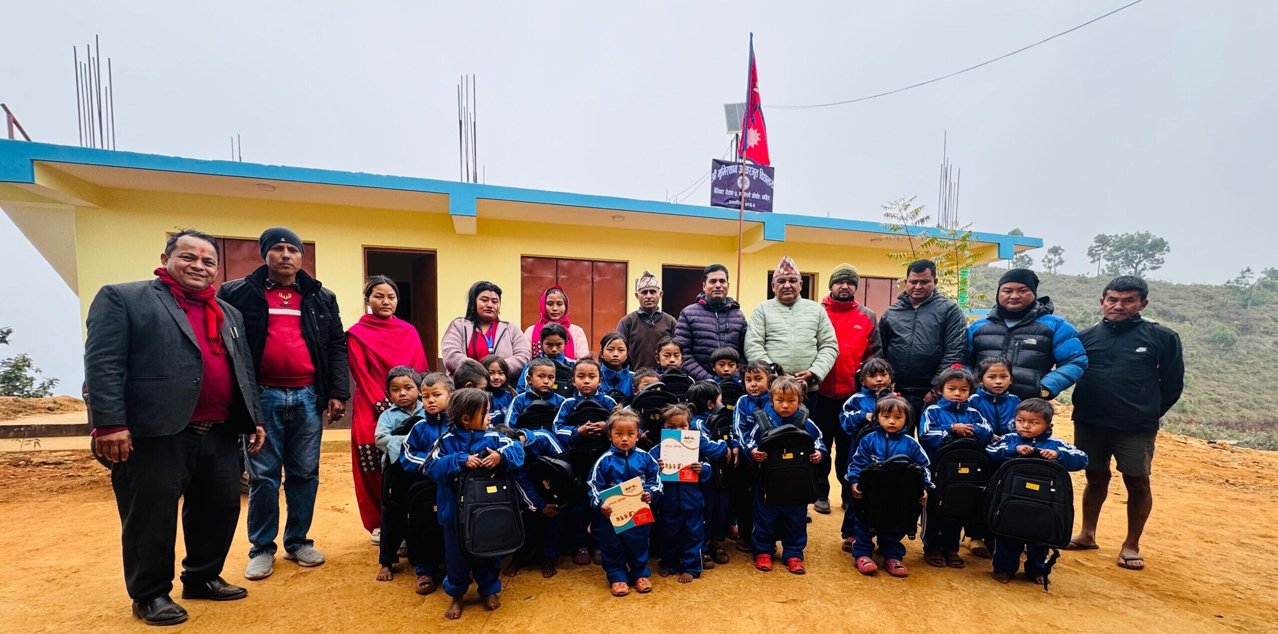 Major Activities: Construction of a three-room primary school building, a two-room toilet facility, improvements of the water collection system, support for teaching materials at Bhumisthan Basic School, and the installation of a drinking water lifting system for the Upper Orbang community in Benighat Rorang Rural Municipality, Ward No. 3, Dhading District, Nepal.